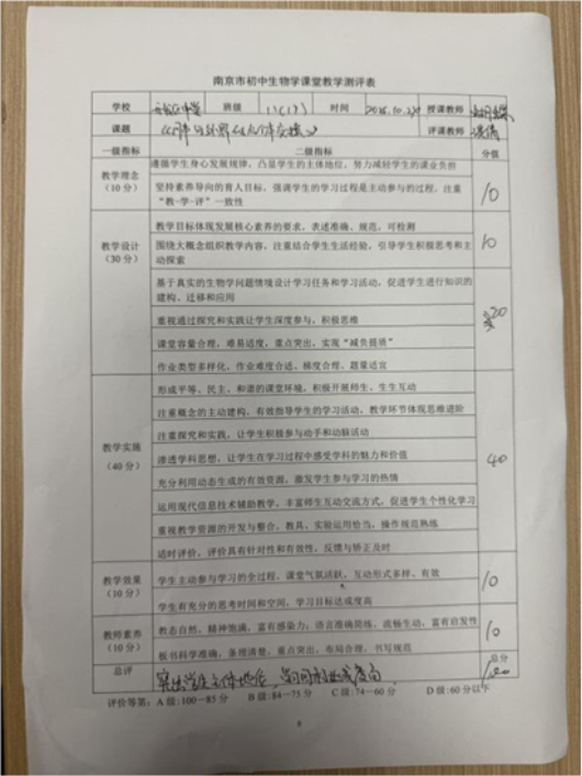 (2)评课表
