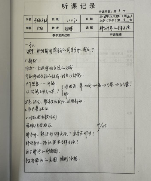 2025年10月24日上午,南京市江宁开发区学校胡蝶老师在翠屏校区八17班开设了苏教版新教材八年级上册《肺与外界的气体交换》一课。胡老师以新冠肺炎为切入点,引发学生对呼吸系统构成的思考。活动一通过自主学习,分角色阐述呼吸系统各部分器官与其功能相适应的关系,学生初步形成结构与功能观。活动二联系生活实际解决真实情境中的问题,增强了学生关注呼吸系统健康的意识。活动三通过绘制肺泡剖面图,帮助学生理解肺泡利于气体交换的结构特点,培养学生的发散性思维。课后实践任务制作肺泡模型进一步帮助学生内化新知。通过本节课的学习,师生共同完成概念建构,培养了学生的工程思维,帮助学生形成对呼吸系统健康和环境保护的关注意识。